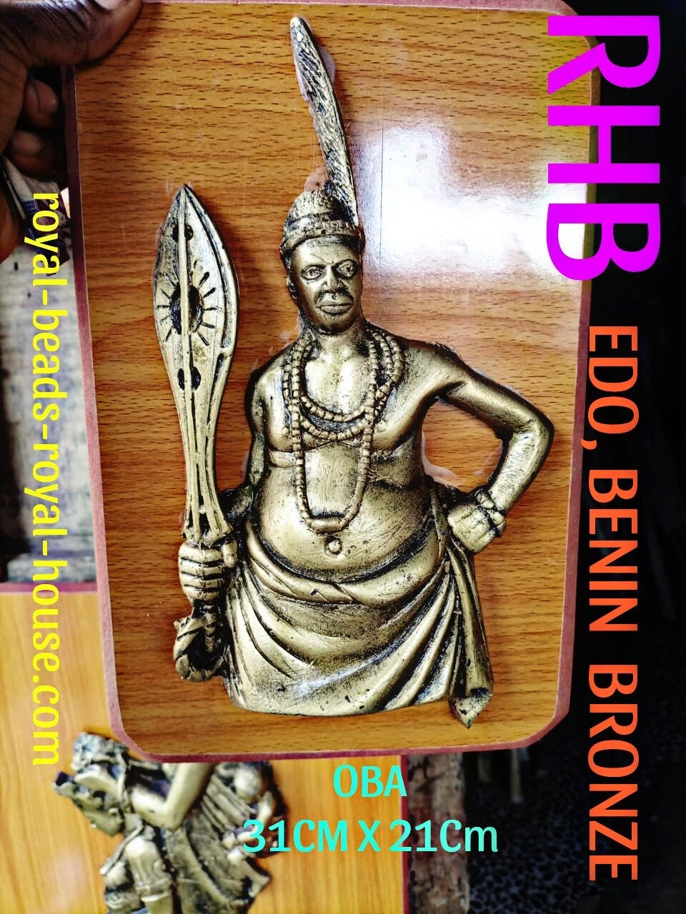 From the master crafters of great BENIN KINGDOM,CONTEMPORARY BENIN BRONZE (bronze plaque, composite of bronze) of great historical references and dimensions,OBA (KING) 31cm × 21 cm = € 1350,45