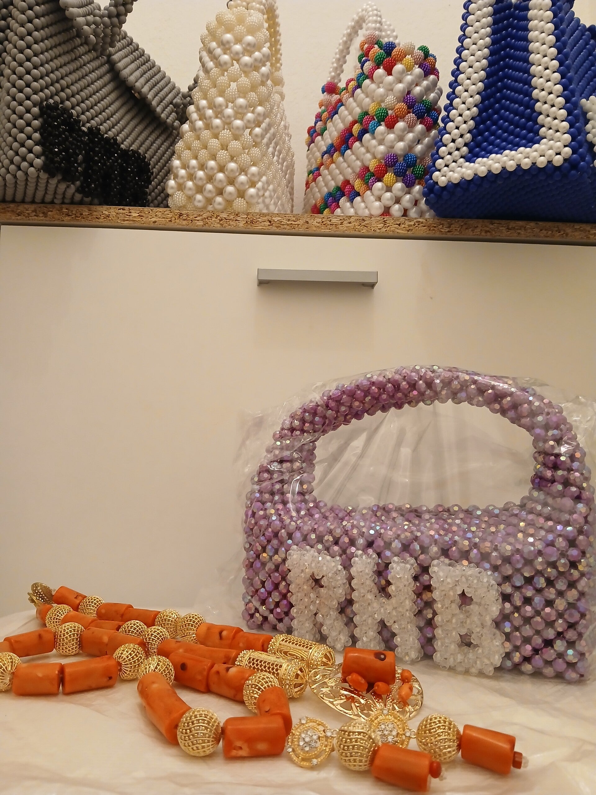 RHB - ROYAL ELEGANCE "AGBAVBOKO IDIA STROLL WHITE" absolute gorgeous, stylish, fancy royal beaded bags " THE AGBAVBOKO'S" HAND CRAFTED Limited edition 🟰 €550,33