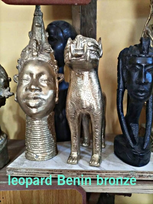 LEOPARD BENIN BRONZE, EXCLUSIVE,BEST TABLE TOP BRONZE SCULPTURES ➕️ free unique exotic bag🎒 Only= €7500,50