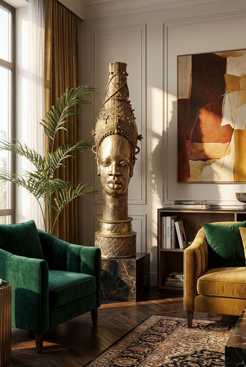 XL QUEEN Idia Bronze Bust, Unique Masterpiece Pure Artistry, Collector & Decorative = €50 000